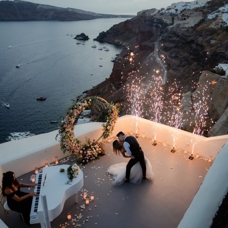 Myrto Pianist Santorini is a professional musician based in Greece who performs at weddings and events. Myrto holds a diploma in classical piano and has performed in concerts, both as a soloist, in duets, and in small orchestral ensembles.