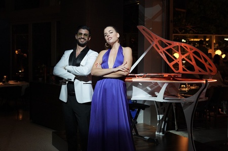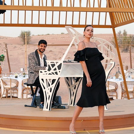 A couple in real life with 5 years of experience in performing live only at premium events, we are your go-to when it comes to finesse, class & elegance. With our unique First in the World, patented, portable piano we are the best choice for your wedding from soft, classy dinner to fresh, blazing party, we got you covered! The genres of music we perform are jazz, pop, swing, funk, cocktail, dinner, lounge and party music. Iconic hits from the roarin' 20s all the way to the modern pop are parts of our passionately selected repertoire. Our collaborations: While as a DUO we can do nearly everything sometimes the beautiful sound of the saxophone or the powerful presence of the drums is more than welcomed. Over the years we have met and made friends several dedicated and professional musicians. We look out for qualities such as passion in what they do, professionalism, talent, great sense of styling and punctuality. We maintain long lasting collaborations and we have formed unique projects you can find only on our website. Ειμαστέ η Βάσια και ο Γιάννης. Το 2017 δημιουργήσαμε το Smooth Mood Project, ένα Αct με το πρώτο και μοναδικό HoloGrand Piano στον κόσμο. Είναι ένα ιδιαίτερο show που εξελίχθηκε στην Ελλάδα και στο Dubai για high profile πελάτες που θέλουν να εντυπωσιάσουν τους καλεσμένους τους με κάτι μοναδικό καιπρωτοποριακό. Eιναι εξιδεικευμένο και σχεδιασμένο αποκλειστικά για υψηλού επιπέδου luxury events. Η αισθητική των venues που συνήθως λαμβάνουν χώρα τέτοιου είδους event είναι σε πλήρη αρμονία με την αισθητική του project μας. Προσελκύει τα βλέμματα και παρέχει "instagramable" υλικό για τους καλεσμένους και τους φωτογράφους. Αναλυτικότερα το act αποτελείται από δύο ή τρία sets συνολικής δίαρκειας 90 λεπτών με πολύ συγκεκριμένο, δεμένο playlist, full of energy ξεκινώντας από dinner, cocktail ρεπερτορίου funk και soul μοντέρνες, με φρέσκο ήχο διασκευές και καταλήγει σε party pop dance medleys.